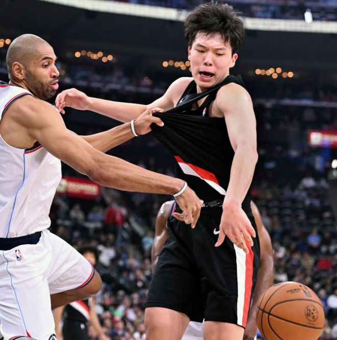 杨瀚森NBA首次上半场得分:连续三场2分 被拽衣服后三节被弃用