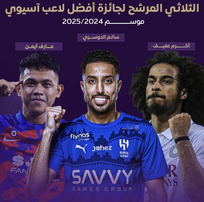 在此前亚足联所公布的亚洲足球先生候选人中,包括沙特的萨勒姆达瓦萨里,还有卡塔尔的阿菲夫以及马来西亚的艾曼。最终经过评选,34岁的达瓦萨里赢得足球先生奖项。这也是他第2次获奖,成为第1位2次当选为亚足联年度最佳球员的沙特球员,是历史第4人,此前日本的中田英寿,卡塔尔的阿菲夫,以及乌兹别克斯坦的杰帕罗夫都曾2次获得亚洲足球先生。